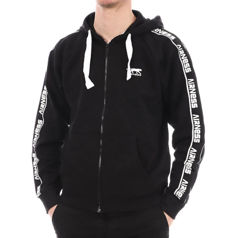 Le hoodie NERVE est idéal pour la vie de tous les jours. Hoodie zippé. Capuche avec cordon de serrage. Bandes ajoutées sur les manches. Poches à l'avant. Logo Airness sur la poitrine. Intérieur en molleton, doux et confortable. 60% Coton, 40% Polyester / Terry Fleece / 280g