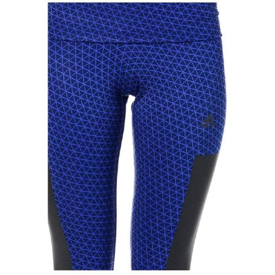 Collant 3/4 de running Adidas de couleur marine à graphisme violet avec large ceinture élastique.